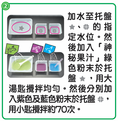 產品包含: 托盤 / 大湯匙 / 小匙 / 3種材料粉